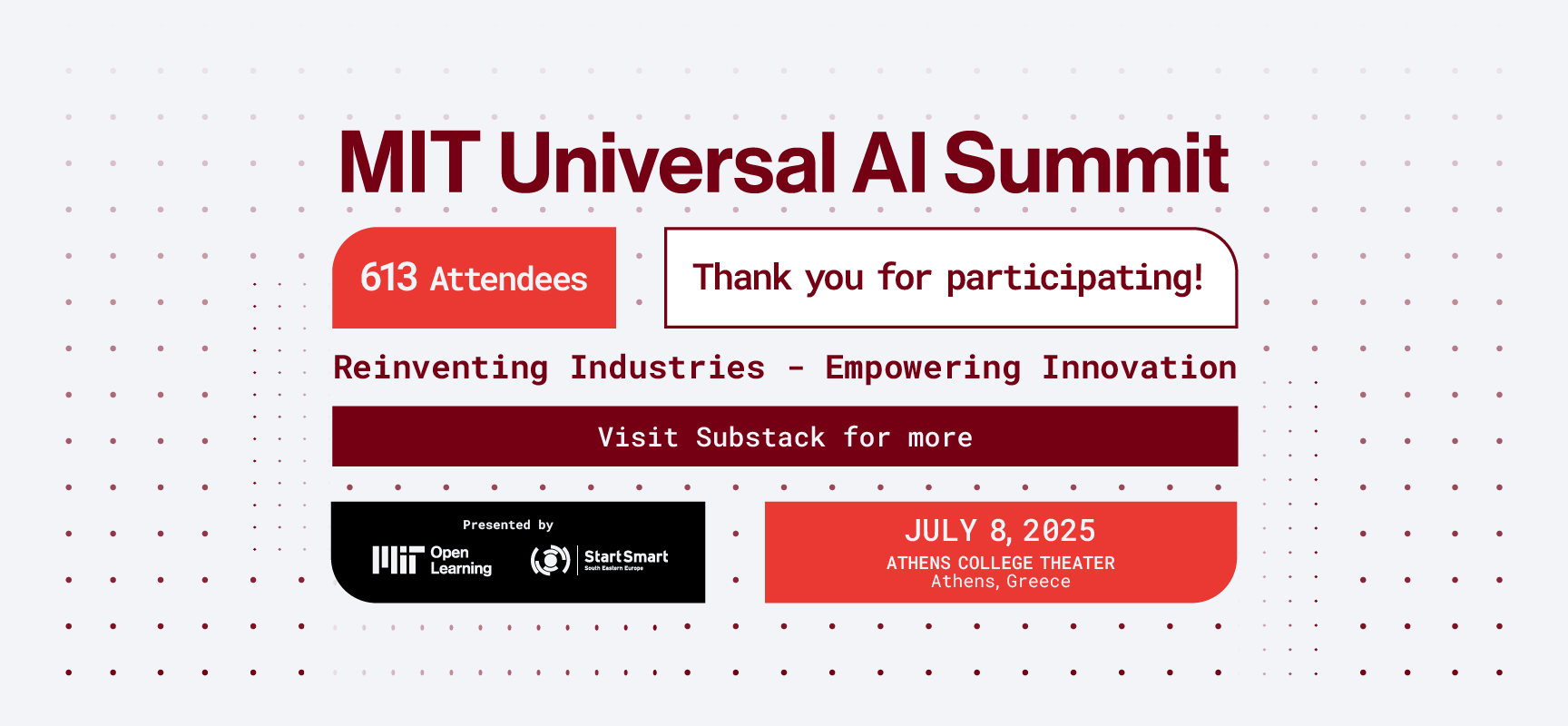 To meet that challenge, MIT Open Learning and StartSmart SEE present the inaugural MIT Universal AI Summit, themed “Reinventing Industries, Empowering Innovation.” This high-energy, one-day gathering in Athens, Greece, on July 8, 2025, convenes visionary leaders from government, industry, academia, and the entrepreneurial ecosystem across South-Eastern Europe.